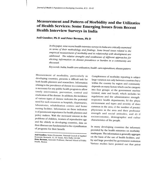 Read Measurement and Pattern of Morbidity and Utilization of Health Services : A Review of Recent Health PDF